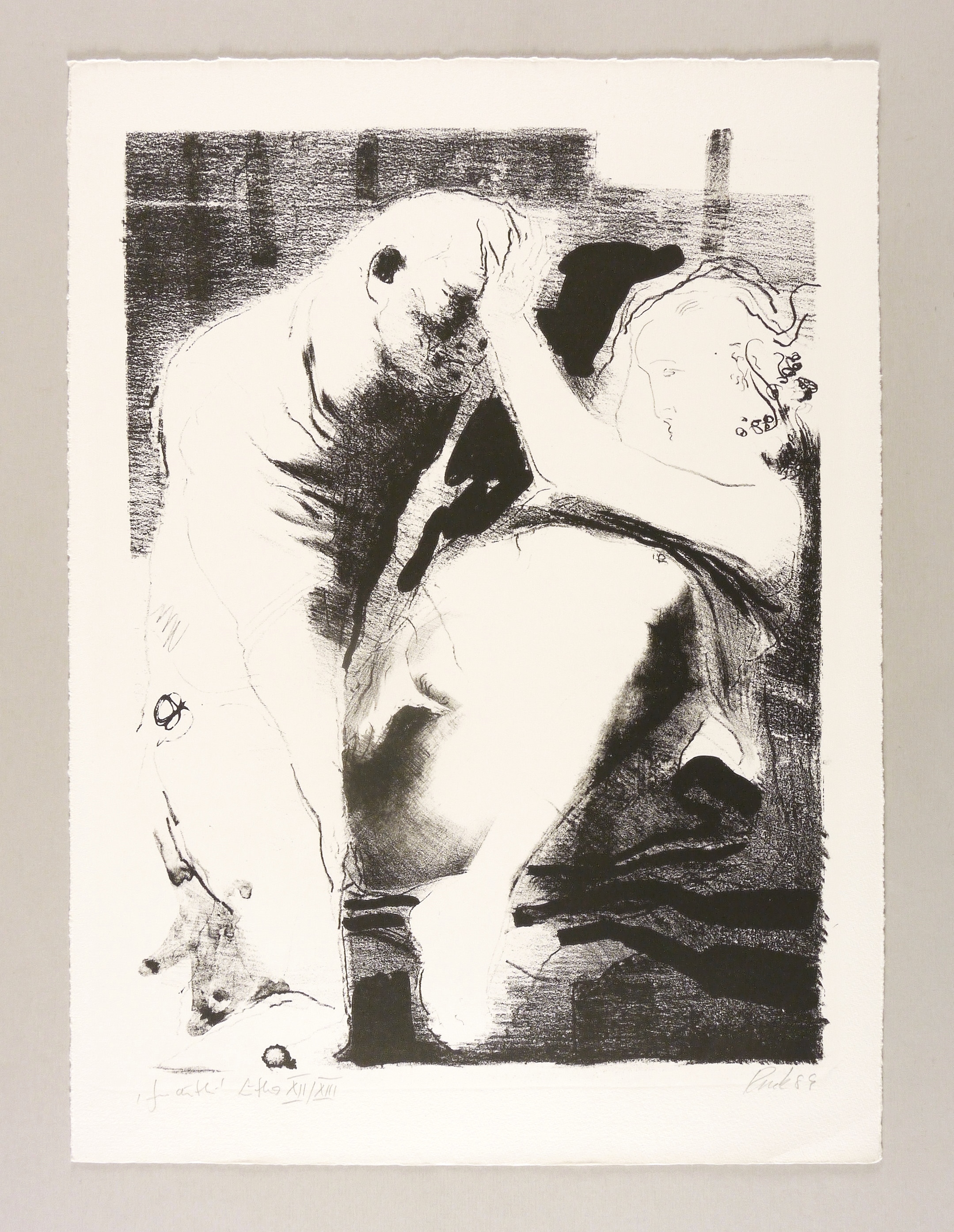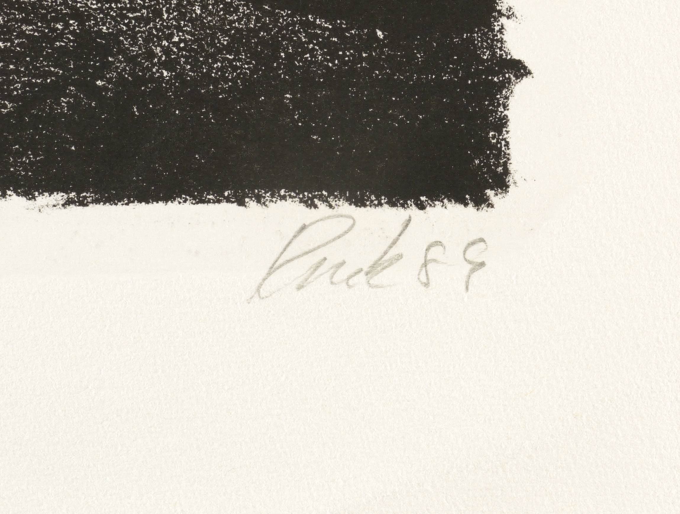 1989. Lithografie / Kreide- & Pinsellithografie, in Schwarz, auf hellchamois Hahnemühle. – Originale Künstlergrafik, von Arno Rink. – Auflage Exemplar Nr. XII/XIII. – 46,0 x 34,0 cm (Darstellung / Druckbild), 54 x 40 cm (Blatt).
