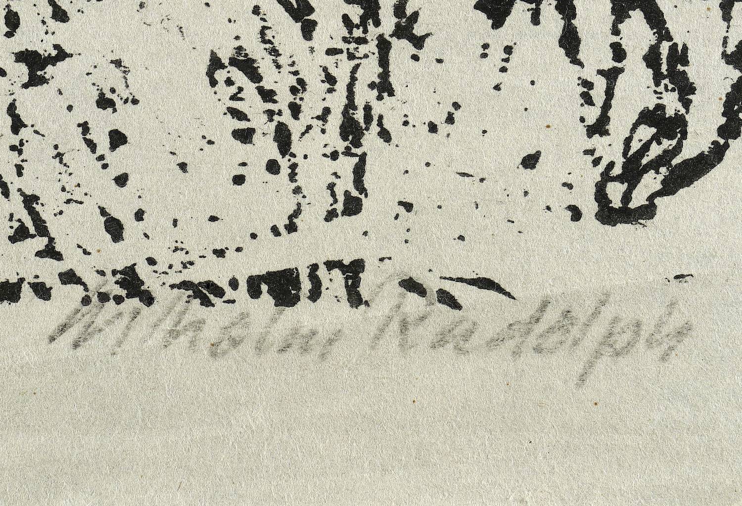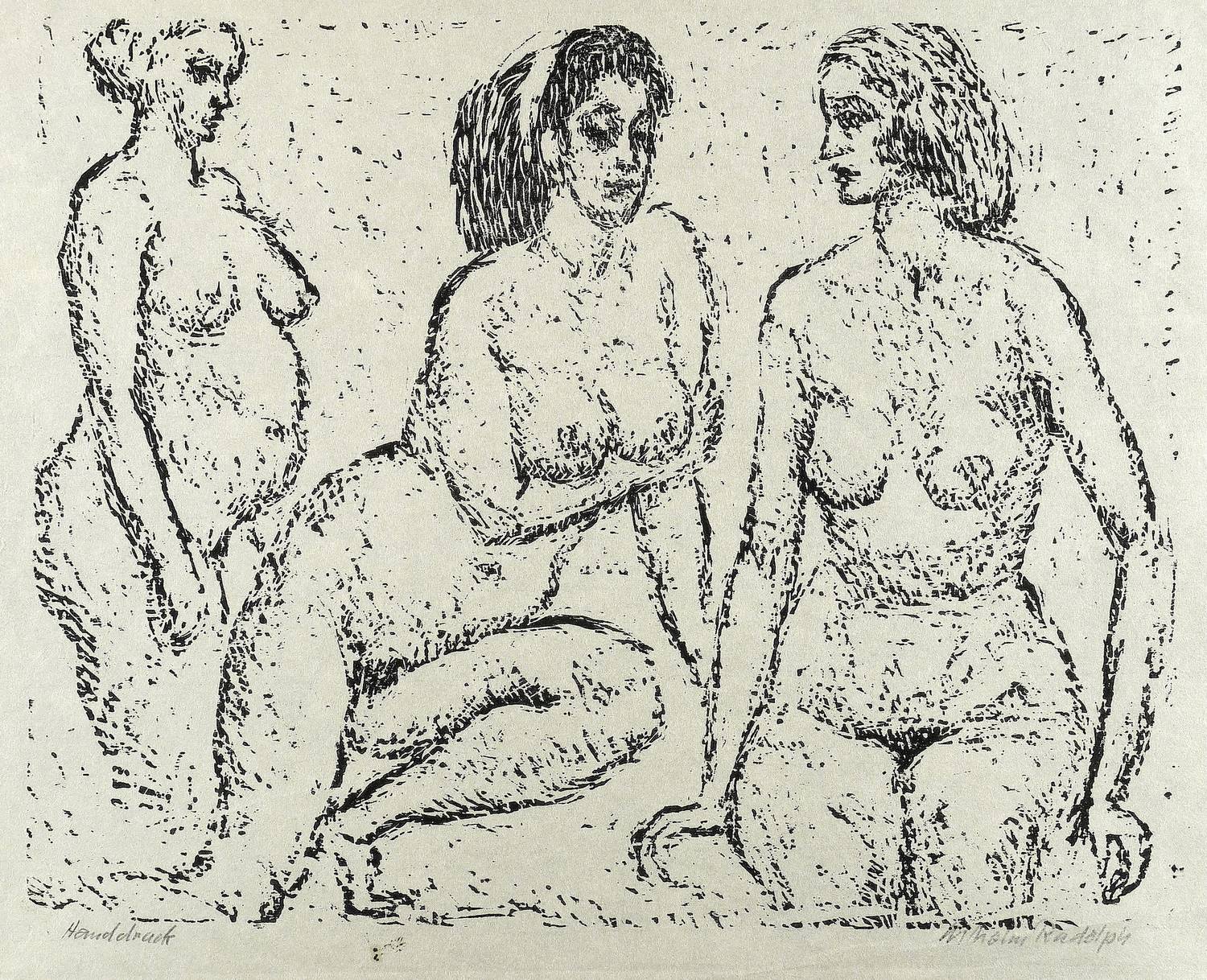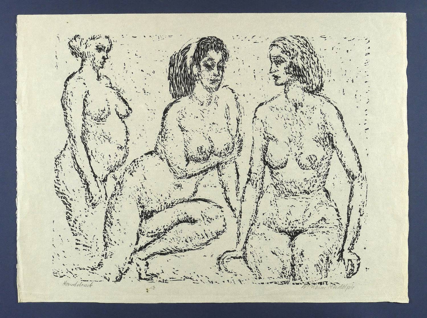Rechts unten in Bleistift signiert: ″Wilhelm Rudolph″. Links bezeichnet: ″Handdruck″. – Eigenhändiger Abzug bzw. Abrieb des Künstlers. – Das feine faserige Büttenpapier durchgehend etwas knickspurig. Insgesamt jedoch von guter Erhaltung.