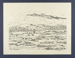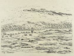 Um 1965. Holzschnitt, in Schwarz, auf gelblichem Velin. – Originale Künstlergrafik, von Wilhelm Rudolph. – 28,9 x 42,0 cm (Darstellung / Druckstock), 38 x 50 cm (Blatt).