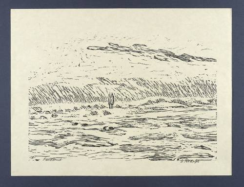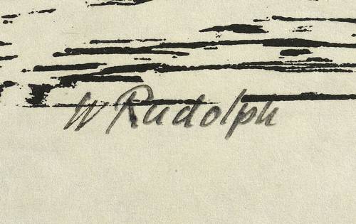 Rechts unten in Tusche und Feder signiert: ″W Rudolph″. Links bezeichnet: ″Handdruck″. – Eigenhändiger Abzug bzw. Abrieb des Künstlers. – Verso Spuren von Druckfarbe aus dem Druckprozess. Sonst tadelloses Exemplar.