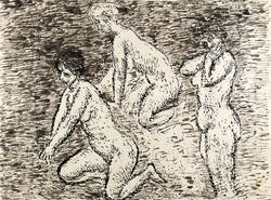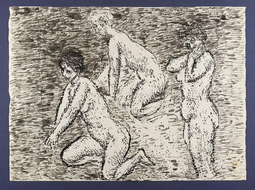 Rudolph, Wilhelm -  -  - Zwei kniende und ein stehender Frauenakt