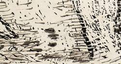 Um 1950. Holzschnitt, mit Rohrfeder & Tusche überarbeitet, auf rauem Japanpapier. – Originale Künstlergrafik, von Wilhelm Rudolph. – Unikat. – 46,0 x 62,0 cm (Darstellung / Blatt).