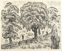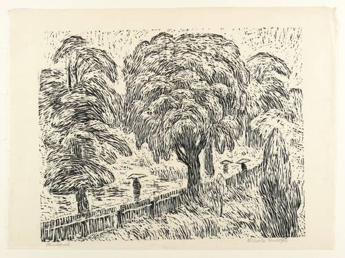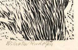 1945-1955. Holzschnitt, in Schwarz, auf rauem Japanpapier. – Originale Künstlergrafik, von Wilhelm Rudolph. – 40,0 x 50,2 cm (Darstellung), 46 x 63 cm (Blatt).