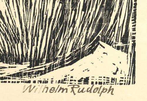 Rechts unten in Feder und Tusche signiert: ″Wilhelm Rudolph″. Links bezeichnet: ″Handdruck″. Verso Nachlass-Stempel. – Der Blattrand etwas knickspurig sowie links unten mit kleiner Fehlstelle. Insgesamt gut erhalten.