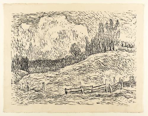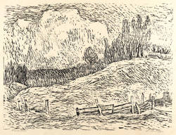 Rudolph, Wilhelm. – „Wiesenhügel mit Weidezaun”.