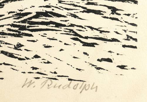 Rechts unten in Bleistift signiert: ″W. Rudolph″. Links bezeichnet: ″Handdruck″. – Eigenhändiger Abdruck bzw. Abrieb des Künstlers. – Tadellos. Sehr guter Zustand.