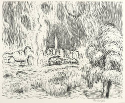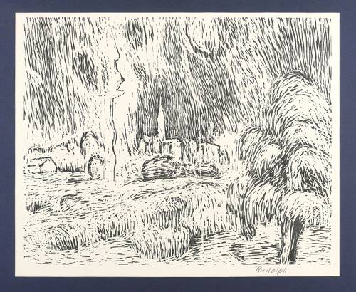 Um 1955. Lithografie / Umdruck, in Schwarz, auf hellchamois Weißenborn-Bütten. – Originale Künstlergrafik, von Wilhelm Rudolph. – 40,1 x 49,8 cm (Darstellung / Druckstock), 43 x 53 cm (Blatt).