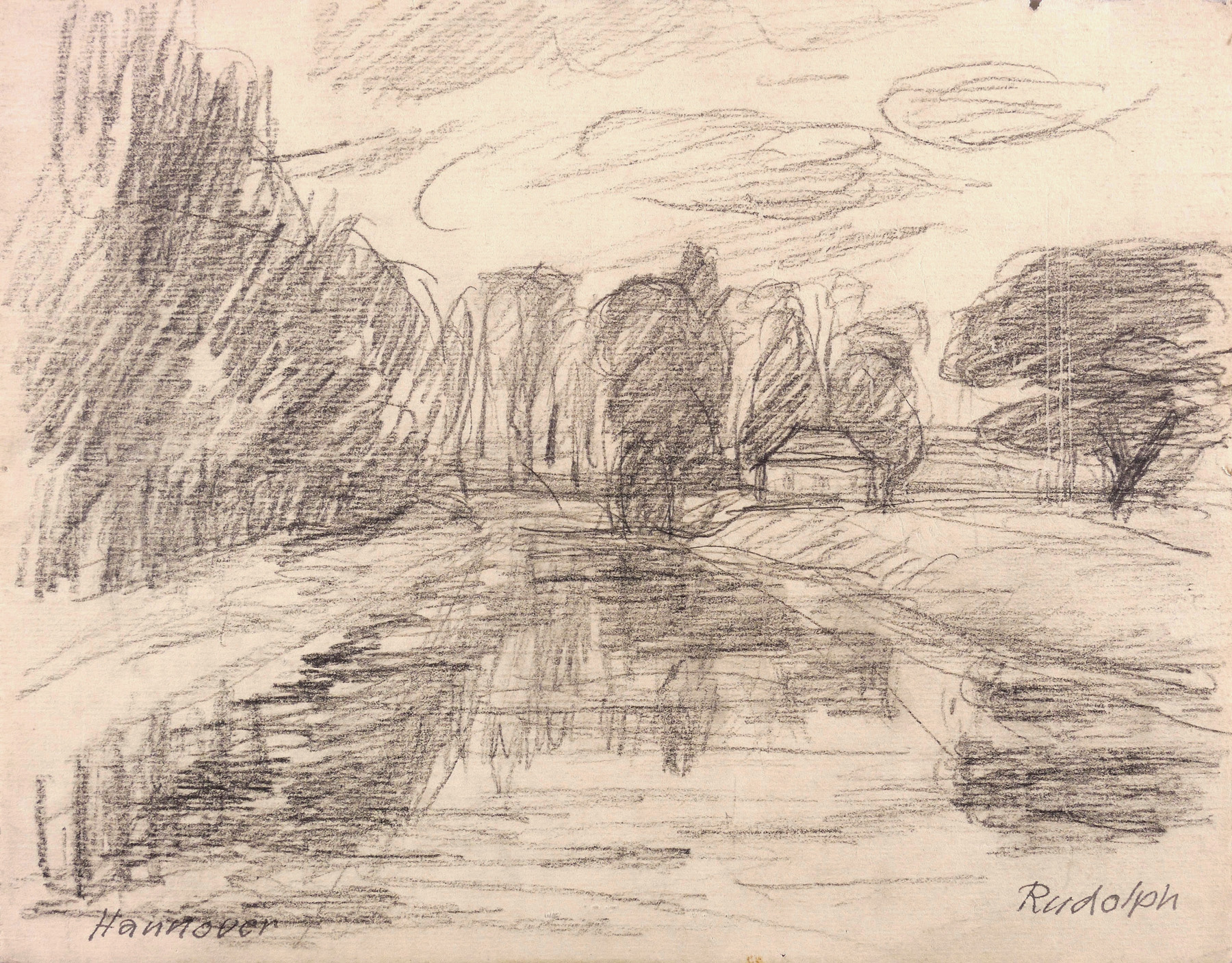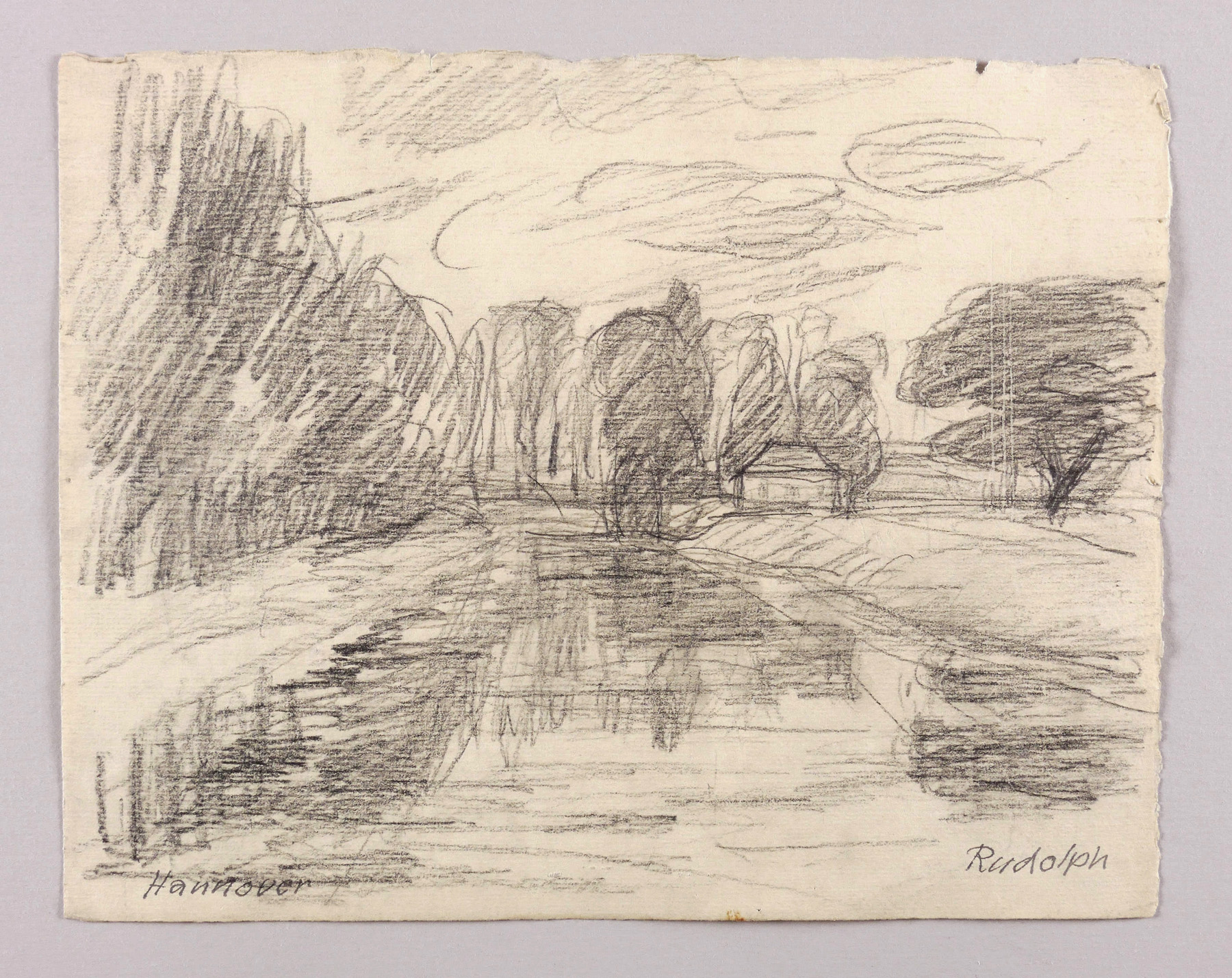 Links unten in schwarzer Feder signiert: ″Rudolph″. Links unten bezeichnet: ″Hannover″. Verso Nachlass-Stempel mit Nr. 273. Wasserzeichen Springendes Einhorn an einer Kette. – Rückseite mit Graphitabrieb. Papier in den Rändern minimal gegilbt. Insgesamt guter Zustand.