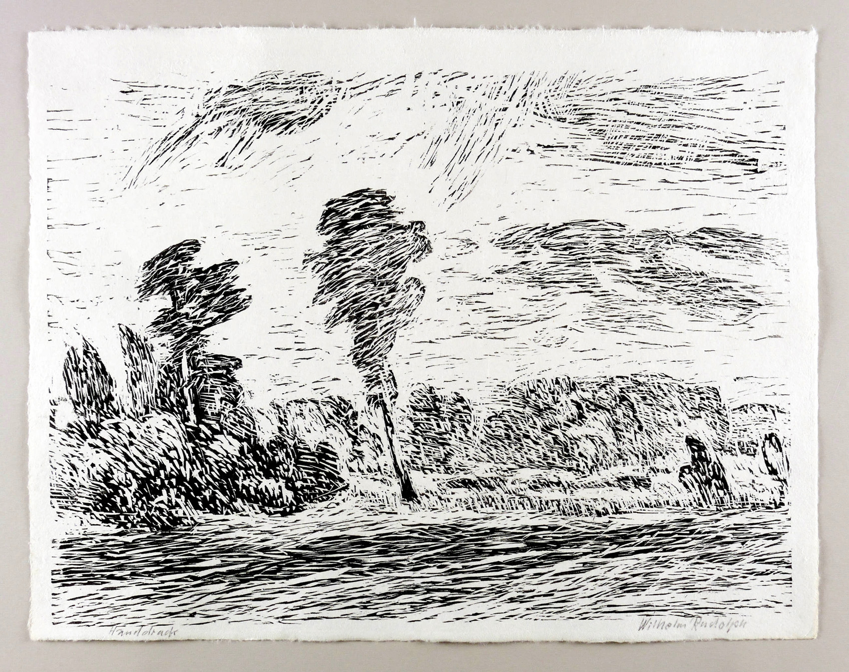 Rechts unten in Bleistift signiert: ″Wilhelm Rudolph″. Links bezeichnet: ″Handdruck″. – Eigenhändiger Abdruck bzw. Abrieb des Künstlers. – Originalrandiges Exemplar. Tadellos. Sehr guter Zustand.