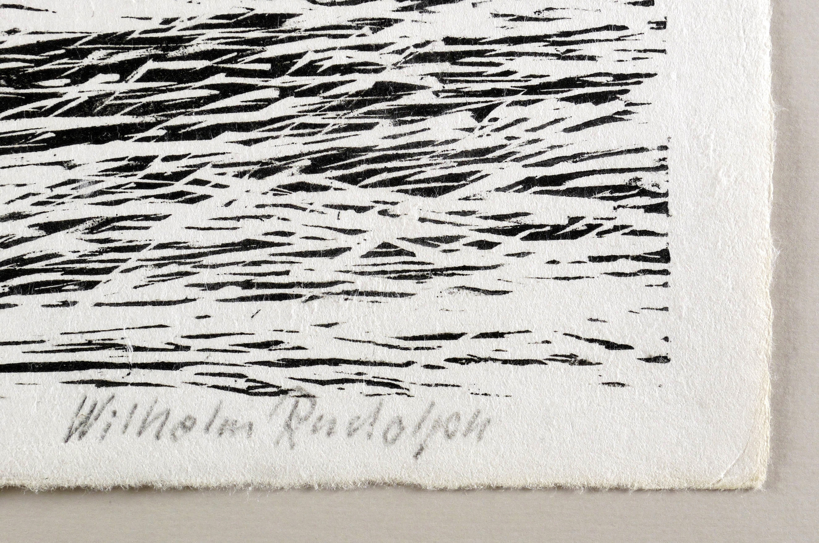 1950-1960. Holzschnitt, in Schwarz, auf grobfasrigem hellem Velin. – Originale Künstlergrafik, von Wilhelm Rudolph. – 47,2 x 63,2 cm (Darstellung / Druckstock), 53 x 68 cm (Blatt).