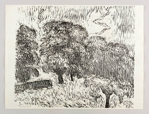 1945-1955. Holzschnitt, in Schwarz, auf kräftig-rauem weißlichem Japan. – Originale Künstlergrafik, von Wilhelm Rudolph. – 35,3 x 41,4 cm (Darstellung), 36 x 48 cm (Blatt).