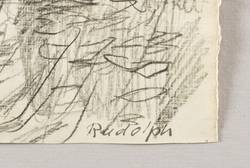 1945-1955. Zeichnung / Graphitzeichnung, auf gelbem Büttenpapier. – Originale Künstlergrafik, von Wilhelm Rudolph. – Unikat. – 20,9 x 27,3 cm (Darstellung / Blatt).
