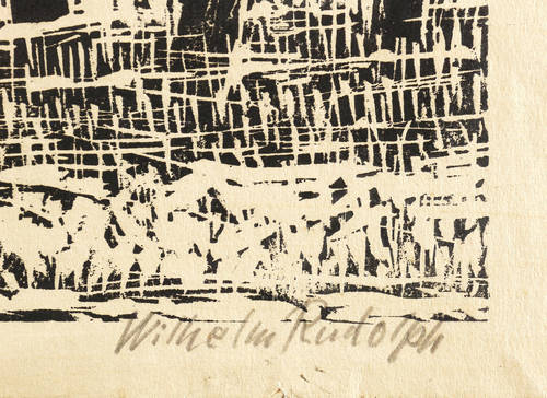 Rechts unten in Bleistift signiert: ″Wilhelm Rudolph″. Links bezeichnet: ″Handdruck″. – Eigenhändiger Abdruck bzw. Abrieb des Künstlers. – Leichte Altersspuren. Guter Zustand.