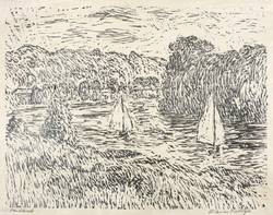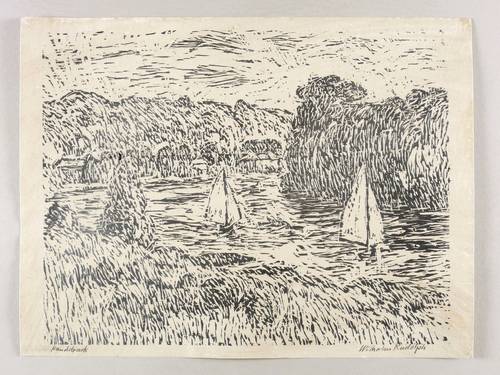 1950-1960. Holzschnitt, in Schwarz, auf sandfarben eingestrichenem Velinkarton. – Originale Künstlergrafik, von Wilhelm Rudolph. – 34,1 x 43,7 cm (Darstellung / Druckstock), 37 x 49 cm (Blatt).