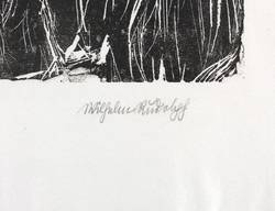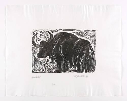 Rechts unten in Bleistift signiert: ″Wilhelm Rudolph″. Links bezeichnet: ″Handdruck″. Etwas weiter unten mittig Titel: ″Jak″. Wasserzeichen. – Unbeschnittenes originalrandiges Exemplar. Oben und unten im breiten Papierrand leicht gewellt. Keine Mängel. Sehr guter Zustand.