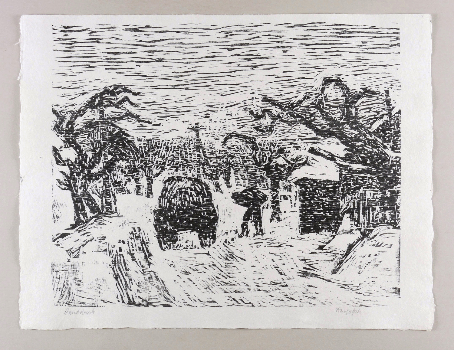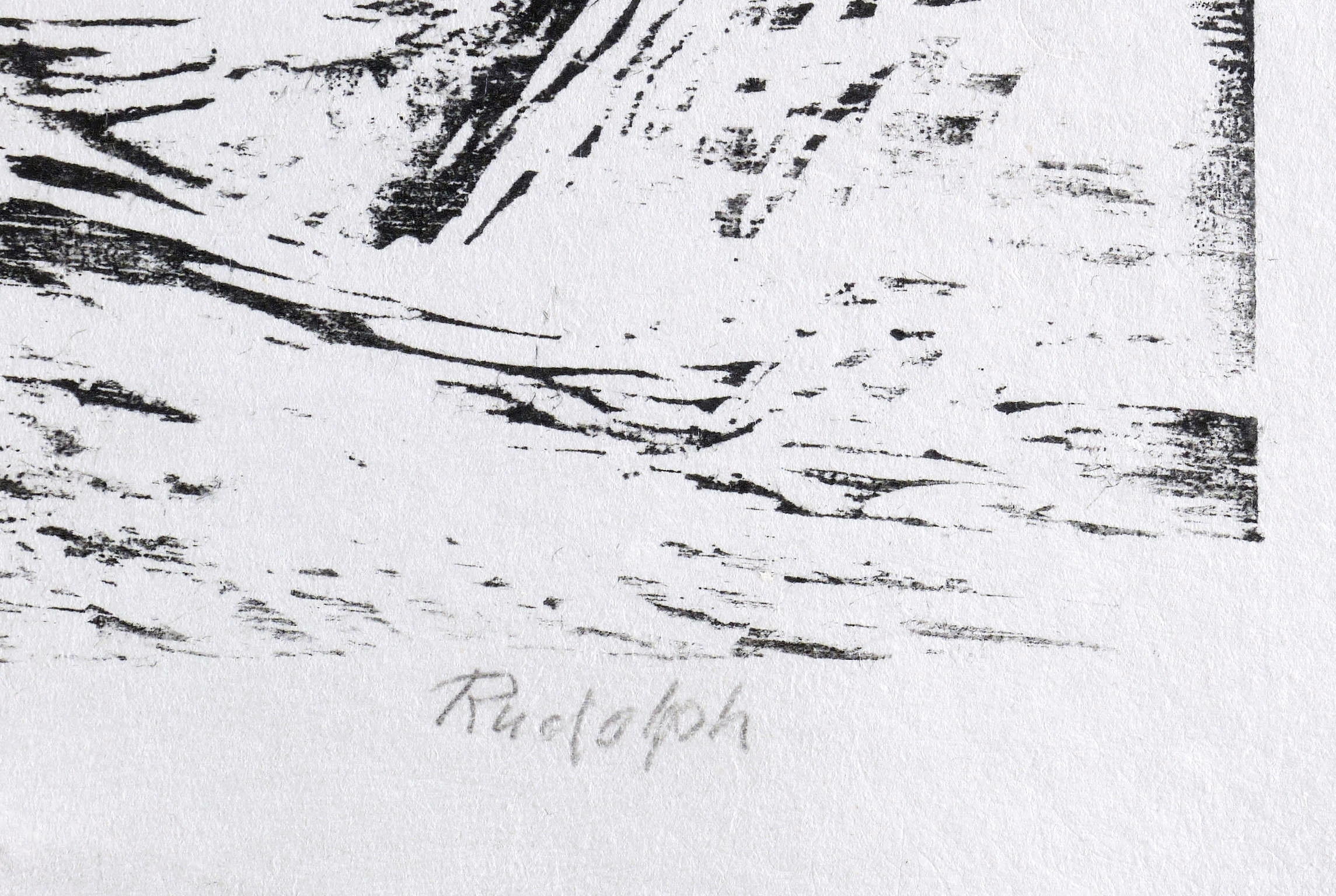 1940-1944. Holzschnitt, in Schwarz, auf rauem weißlichem Japanbütten. – Originale Künstlergrafik, von Wilhelm Rudolph. – 44,7 x 54,8 cm (Darstellung / Druckstock), 50 x 66 cm (Blatt).