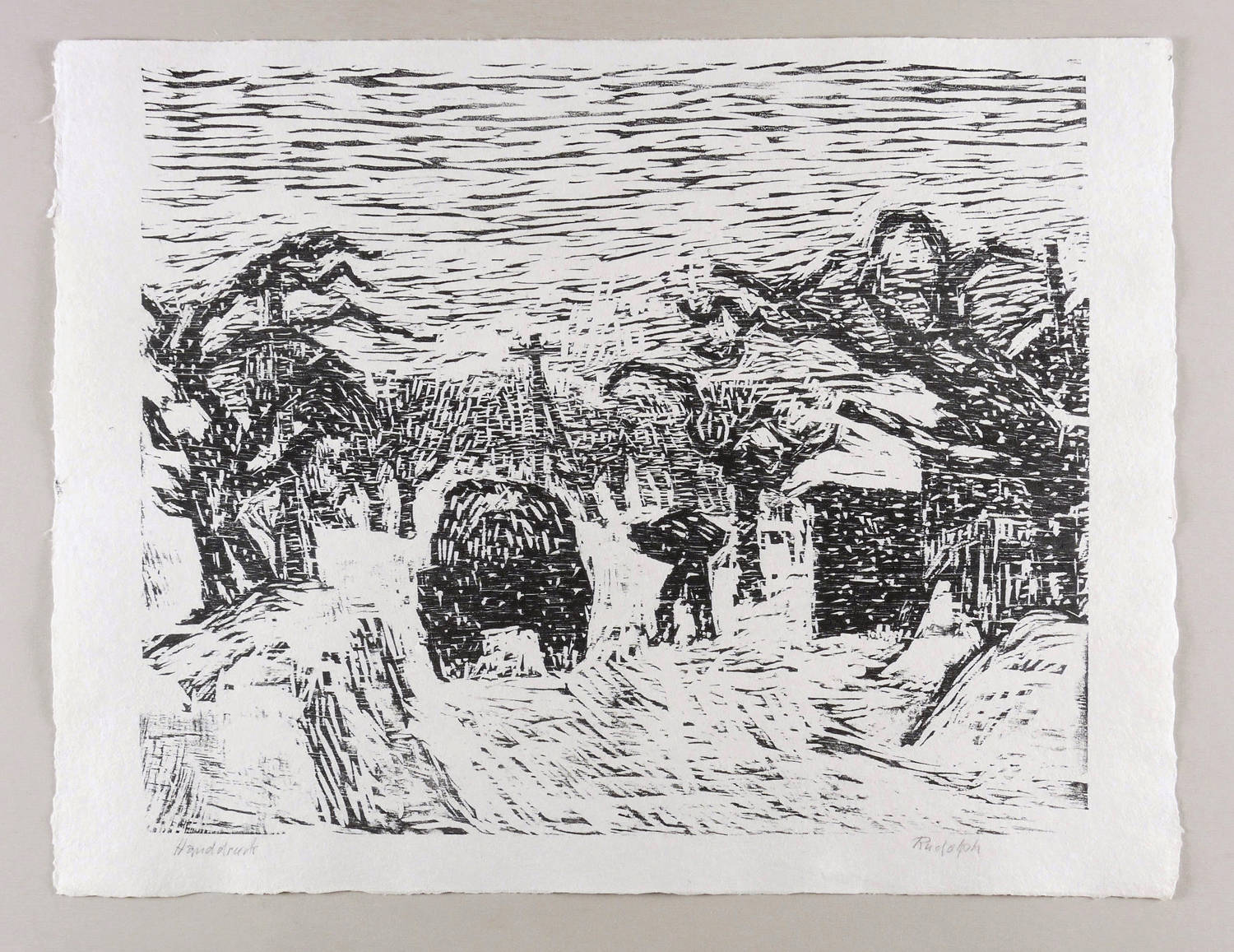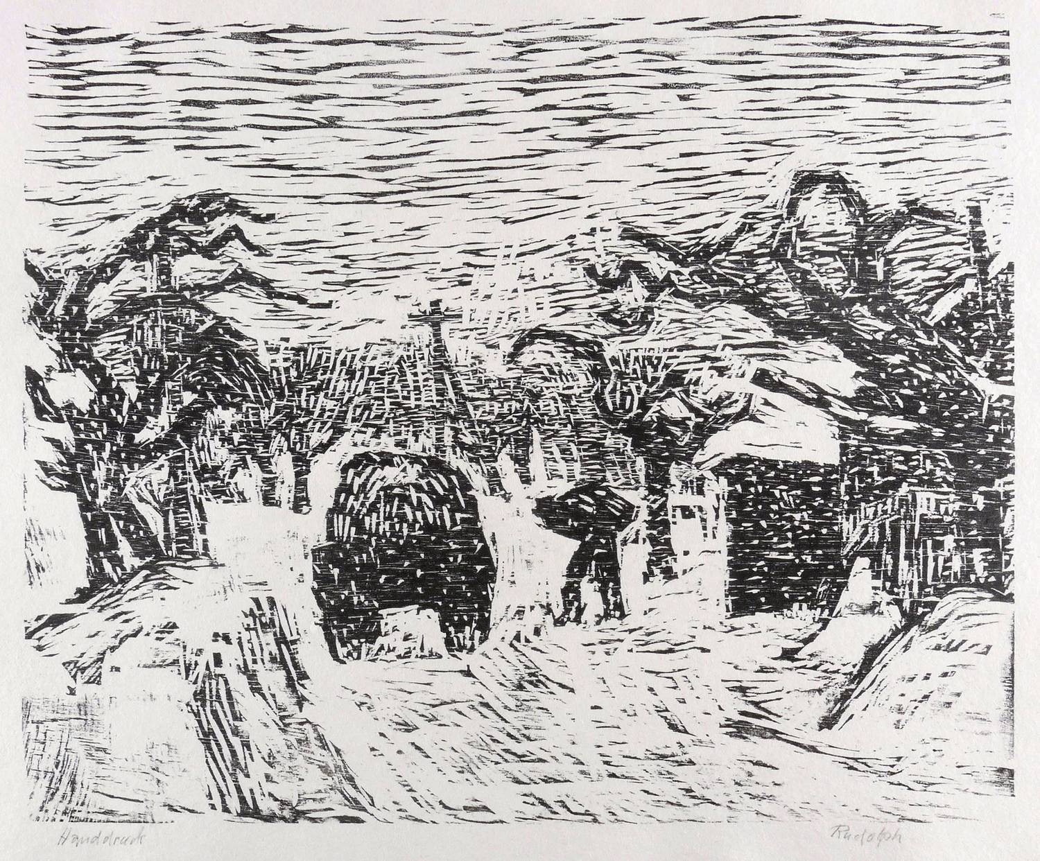 Rechts unten in Bleistift signiert: ″Rudolph″. Links bezeichnet: ″Handdruck″. – Eigenhändiger Abzug bzw. Abrieb des Künstlers nach 1945. - Ausstellung: 2014 Städtische Galerie Dresden, (Kat.-Nr. 144, Abb. S. 130). - Literatur: W.R. Holzschnitte aus zwei Jahrzehnten (Feldafing: Bucheim Verlag 1958), Abb.; W.R. Dresden 45. Holzschnitte und Federzeichnungen (Leipzig: Reclam 1983), Abb. S. 33. – Sehr guter Zustand.