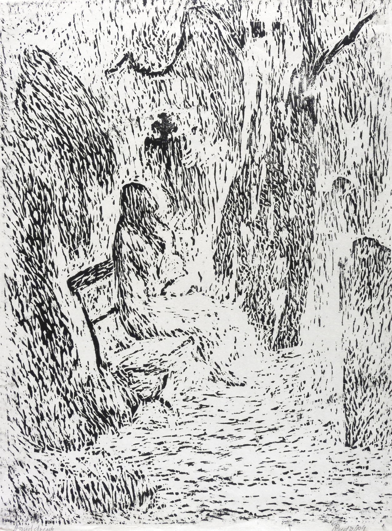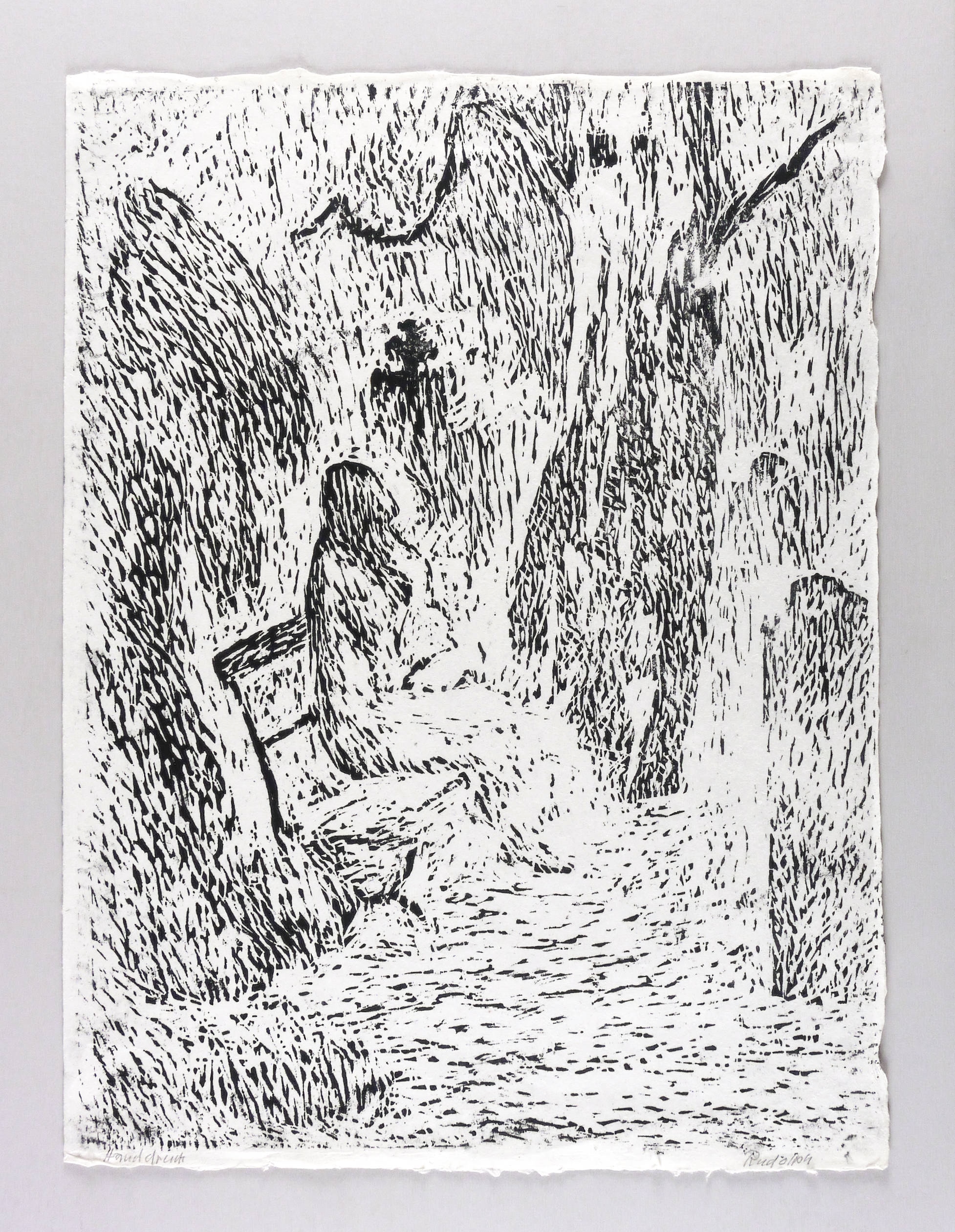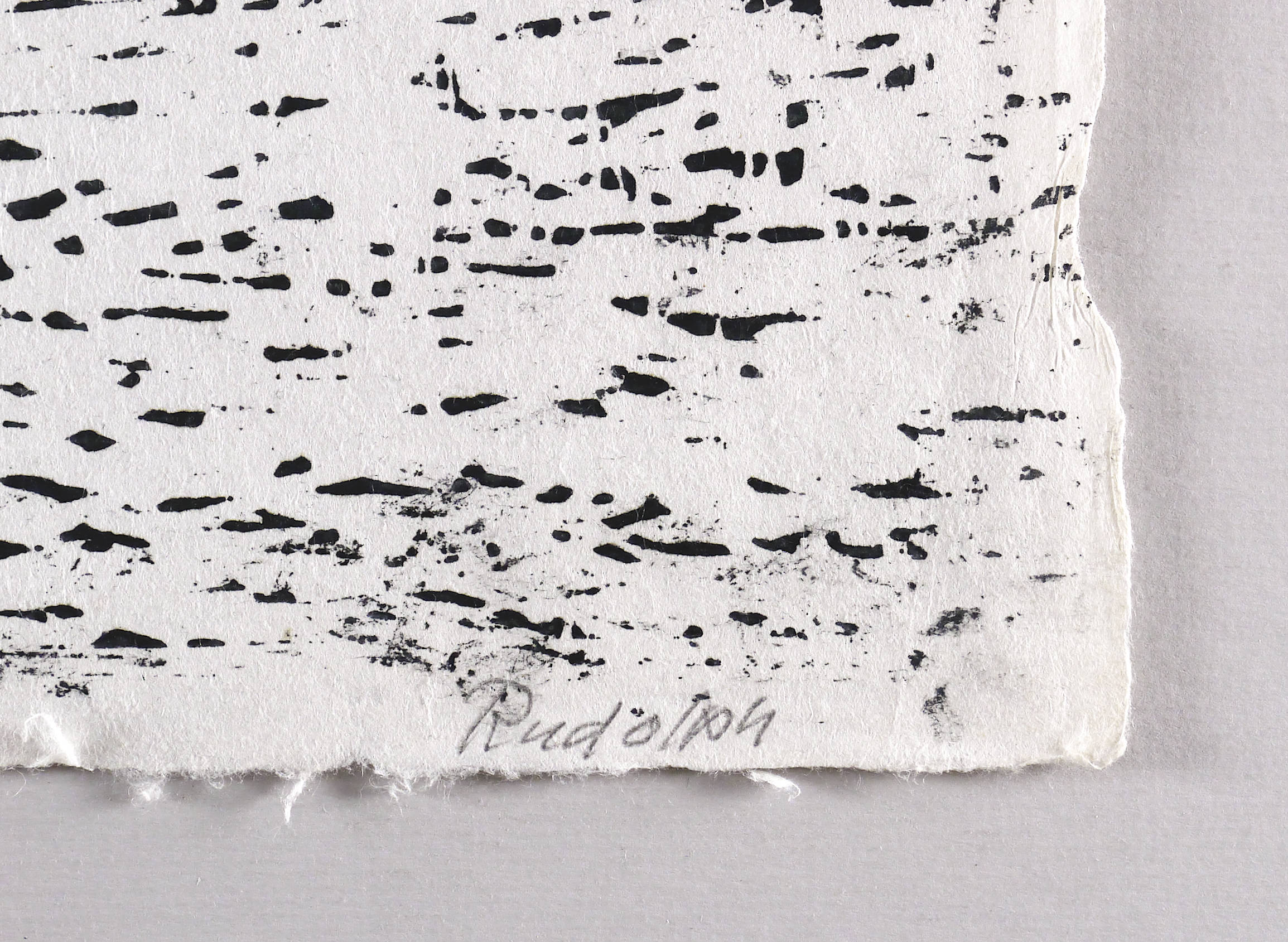 Rechts unten in Bleistift signiert: ″Rudolph″. Links bezeichnet: ″Handdruck″. – Eigenhändiger Abzug bzw. Abrieb des Künstlers. - Aus der Folge von mindestens 15 Holzschnitten zum Thema ″Friedhof Tolkewitz″, die ab 1970 entstand. - Laut Martin Schmidt setzt der Holzschnitt Rudolphs 1975 verstorbenen Gattin Johanna Rudolph ″ein bildnerisches Denkmal″. - Ausstellung: 1982 Galerie Döbele Ravensburg (Ausst.-Kat. Nr. 197), 1988 Galerie Döbele Ravensburg (Ausst.- Kat. Nr. 111, Abb. S. 57), 2014 Städtische Galerie Dresden (Kat.-Nr. 157, Abb. S. 140, hier mit dem Titel ″Friedhof mit Vision von Rudolphs Frau″). - Literatur: Martin Schmidt, W.R. Licht und Dunkelheit des Lebens und der Natur (Dresden 2002), S. 156, Abb. 142. - Provenienz: Sammlung Dr. Ingrid und Prof. Dr. Albrecht Scholz, Dresden. – Tadelos. Sehr guter Zustand.