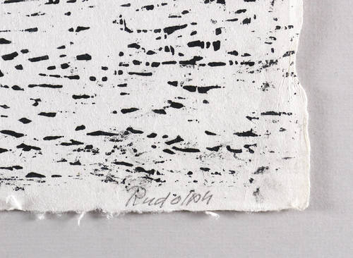 1975. Holzschnitt, in Schwarz, auf rauem weißlichem Japan. – Originale Künstlergrafik, von Wilhelm Rudolph. – 60,5 x 45,5 cm (Darstellung / Druckstock), 62 x 47 cm (Blatt).