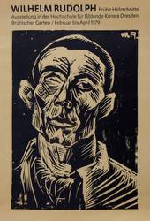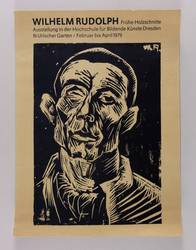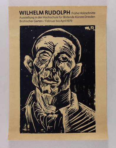 Nicht handsigniert. Diverse Plakat-Inschriften. – Künstlerplakat zur Ausstellung ″Wilhelm Rudolph. Frühe Holzschnitte″ in der Hoxchschule für Bildende Künste Dresden Februar bis März 1979. Mit der leicht vergrößerten Wiedergabe des Holzschnitts von 1919-24. – Provenienz: Sammlung Erhard Frommhold, Dresden. – Sehr guter Zustand.