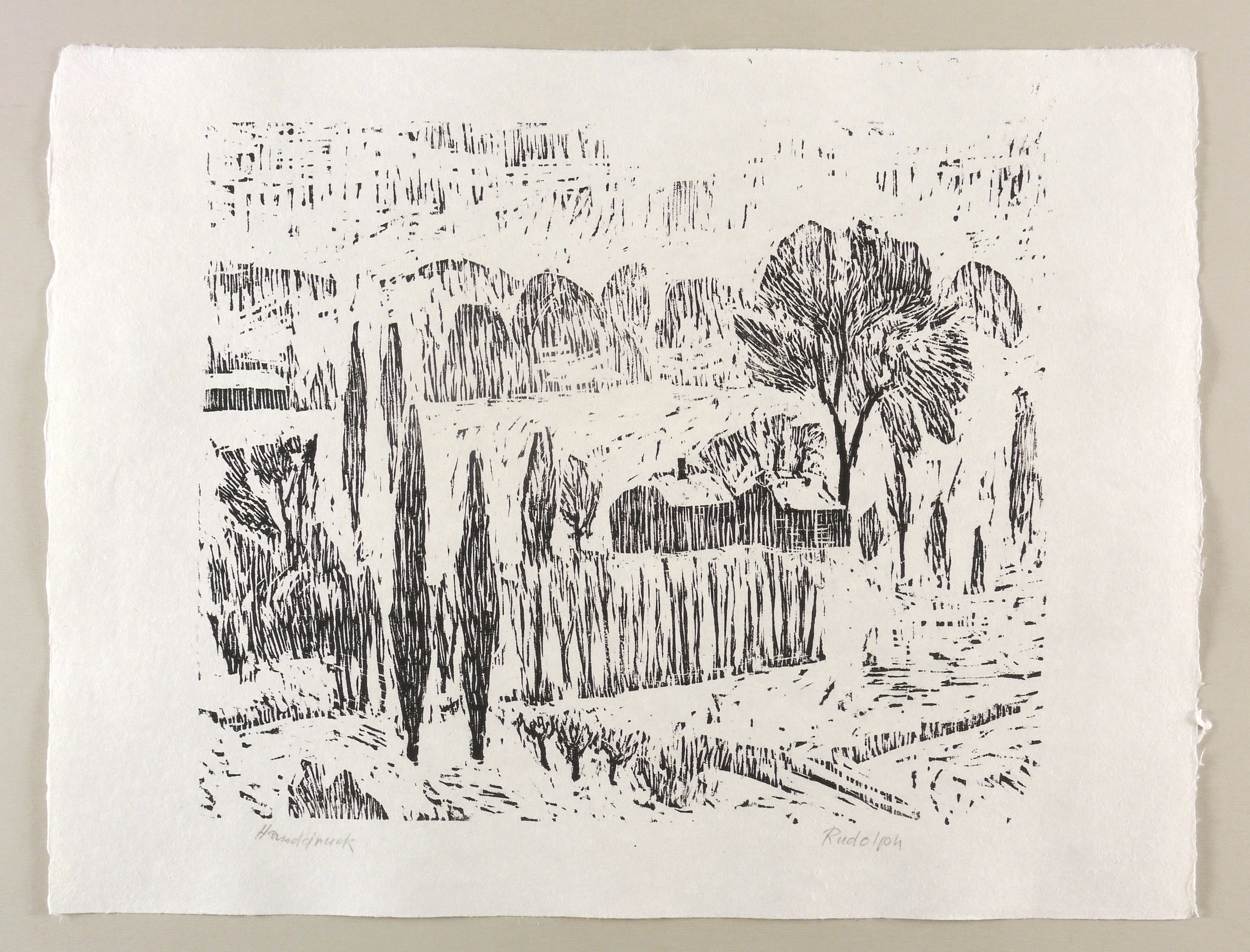 Rechts unten in Bleistift signiert: ″Rudolph″. Links bezeichnet: ″Handdruck″. – Eigenhändiger Handabzug des Künstlers. – Ausstellung: 1988 Galerie Döbele Ravensburg (Kat.-Nr. 98, Abb. S. 48). – Schönes breitrandiges Exemplar. Tadellos erhalten. Sehr guter Zustand.
