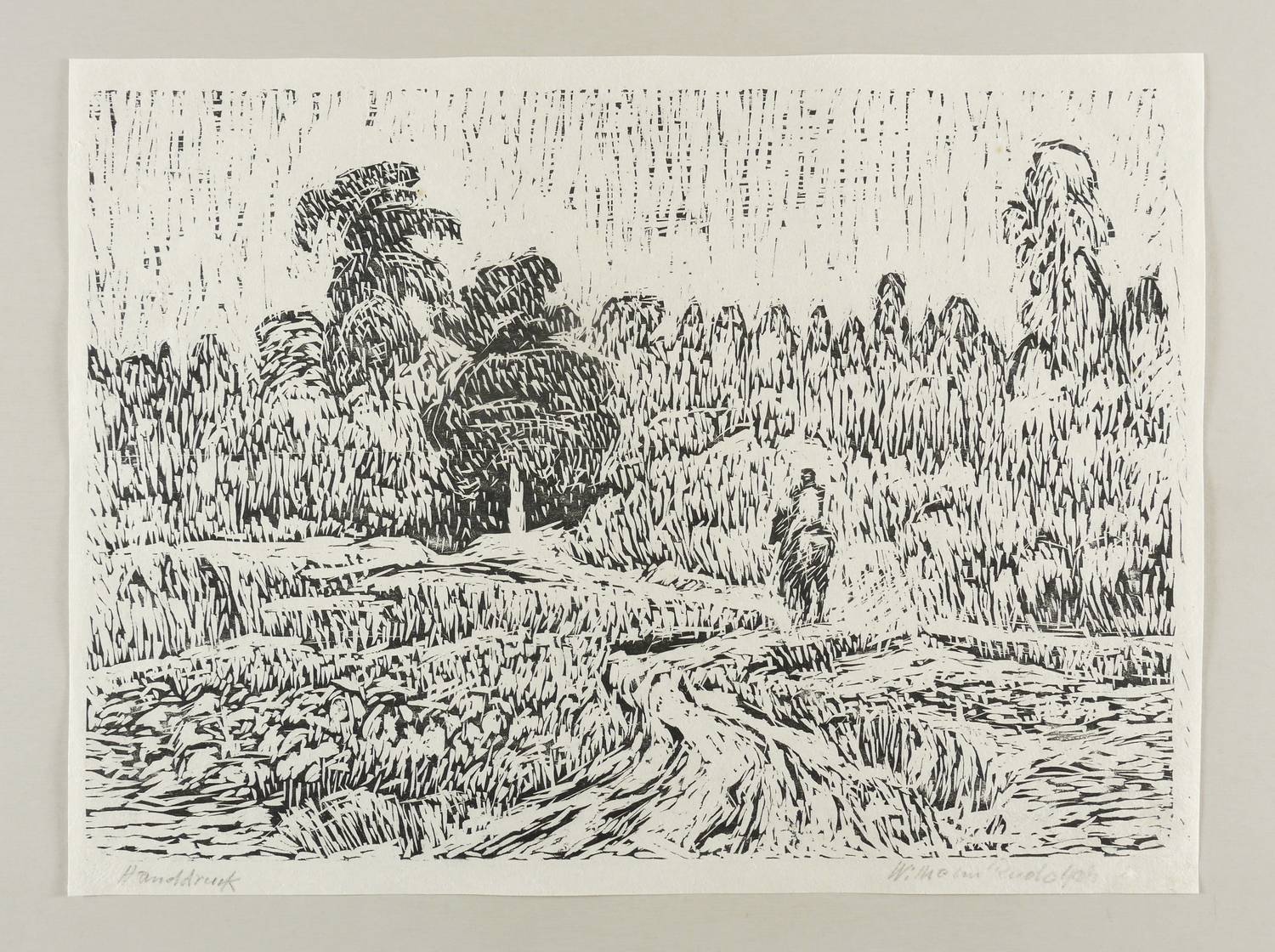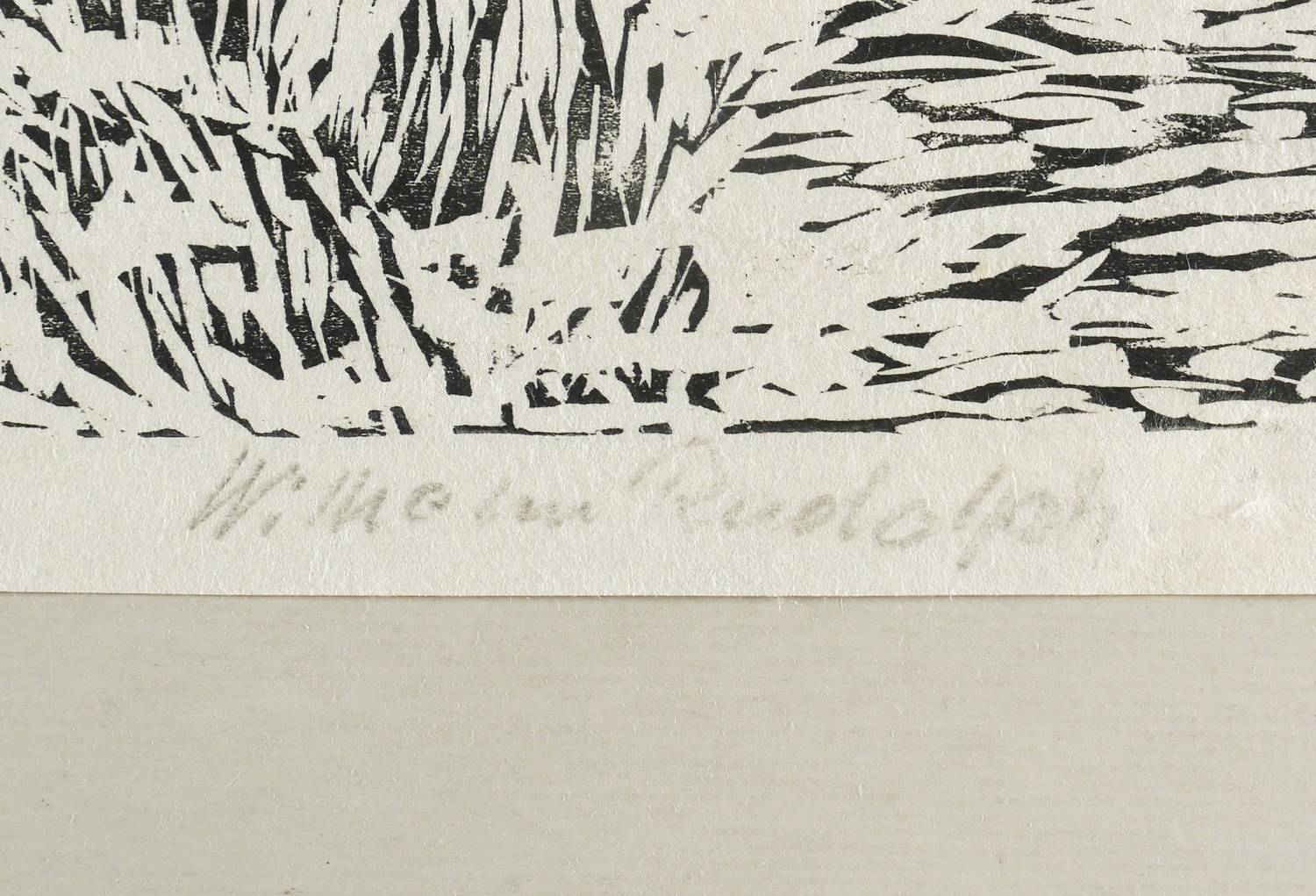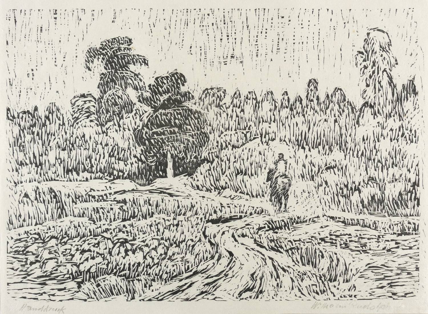 Rechts unten in Bleistift signiert: ″Wilhelm Rudolph″. Links bezeichnet: ″Handdruck″. – Eigenhändiger Abzug bzw. Abrieb des Künstlers. – Schmalrandiges Exemplar. Leichte Läsion in der rechten unteren Blattecke unauffällig restauriert. Sehr guter Zustand.