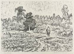 1950-1960. Holzschnitt, in Schwarz, auf hellchamois Japanbütten. – Originale Künstlergrafik, von Wilhelm Rudolph. – 35,1 x 49,8 cm (Darstellung / Druckstock), 38 x 52 cm (Blatt).