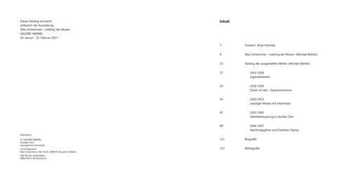 8°, Broschur, 120 S., 82 Abb. - Katalog zur Ausstellung ″Max Schwimmer - Liebling der Musen″ in der Galerie Himmel in Dresden, 14.1.-25.2.2017. - Wiedergabe sämtlicher Exponate der Ausstellung, einführende Texte von Michael Böhlitz sowie Transkription zahlreicher Autografen des Künstlers. - Erstausgabe, neu. ISBN: 978-3-00-055516-9.