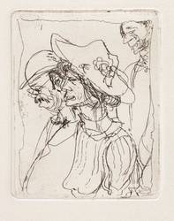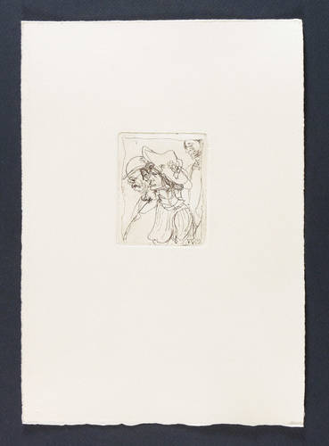 1953-58/1985. Radierung / Strichätzung, in Schwarz, auf Hahnemühle-Bütten. – Originale Künstlergrafik, von Max Schwimmer. – Auflage 30 Exemplare. – 7,9 x 6,3 cm (Darstellung / Platte), 28 x 20 cm (Blatt).