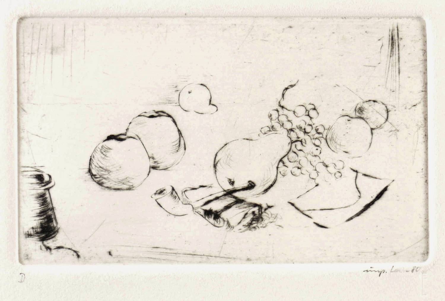 George 98. – Aus: Max Schwimmer II. Radierungen (Leipzig: Staatlicher Kunsthandel der DDR / Galerie am Sachsenplatz 1980). – Rechts unten in Bleistift signiert und datiert vom Drucker Ernst Lau. Dazu Trockenstempel. Links Auflagenbezeichnung. Verso in Bleistift signiert von der wissenschaftlichen Betreuerin des Nachlasses Magdalena George. – Posthumer Abzug von der originalen Platte. – Sehr guter Zustand.