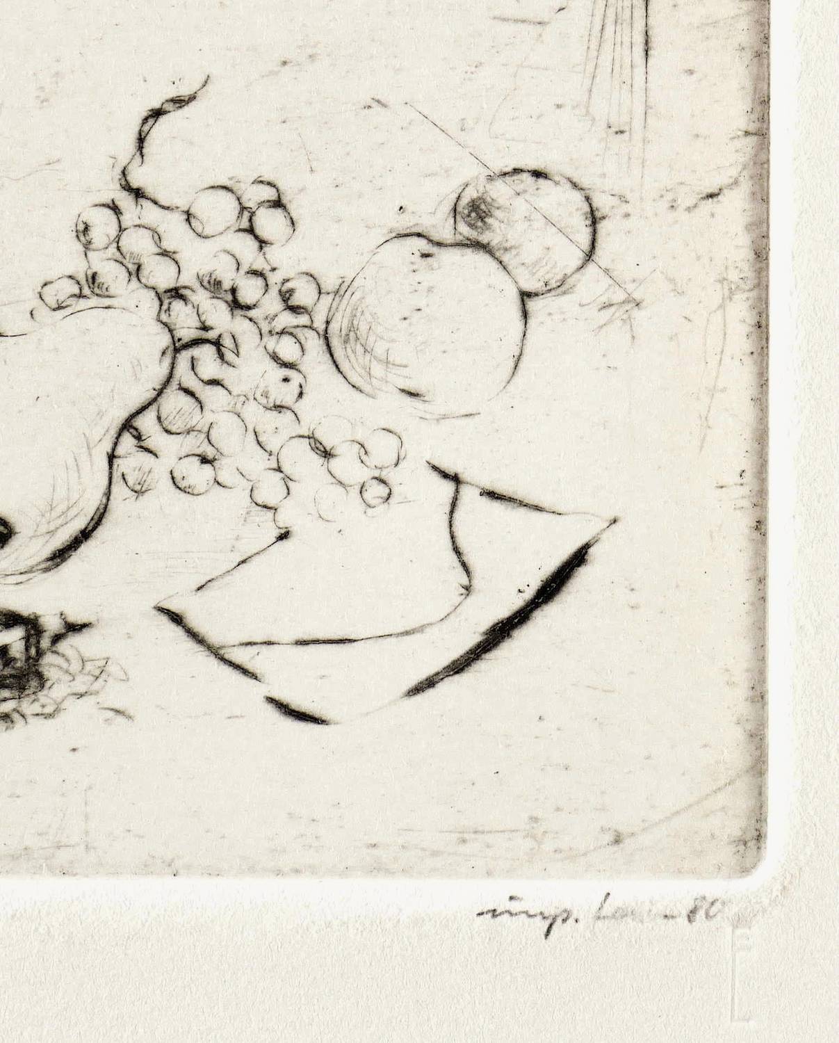 1938/1980. Radierung / Kaltnadel, in Schwarz, auf Hahnemühle-Bütten. – Originale Künstlergrafik, von Max Schwimmer. – Druckerexemplar. – 9,0 x 14,8 cm (Darstellung / Platte), 20 x 28 cm (Blatt).