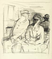 1924/1925. Zeichnung / Bleistiftzeichnung, partiell gewischt, auf leichtem hellgelbem Velin. – Originale Künstlergrafik, von Max Schwimmer. – Unikat. – 14,5 x 13,0 cm (Darstellung), 21,5 x 15 cm (Blatt).