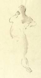 1950-1960. Zeichnung / Kreidezeichnung, in Schwarz, in brauner Tusche laviert, auf gelbem Velin. – Originale Künstlergrafik, von Max Schwimmer. – Unikat. – 19,0 x 7,6 cm (Darstellung), 31,5 x 24 cm (Blatt).