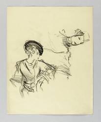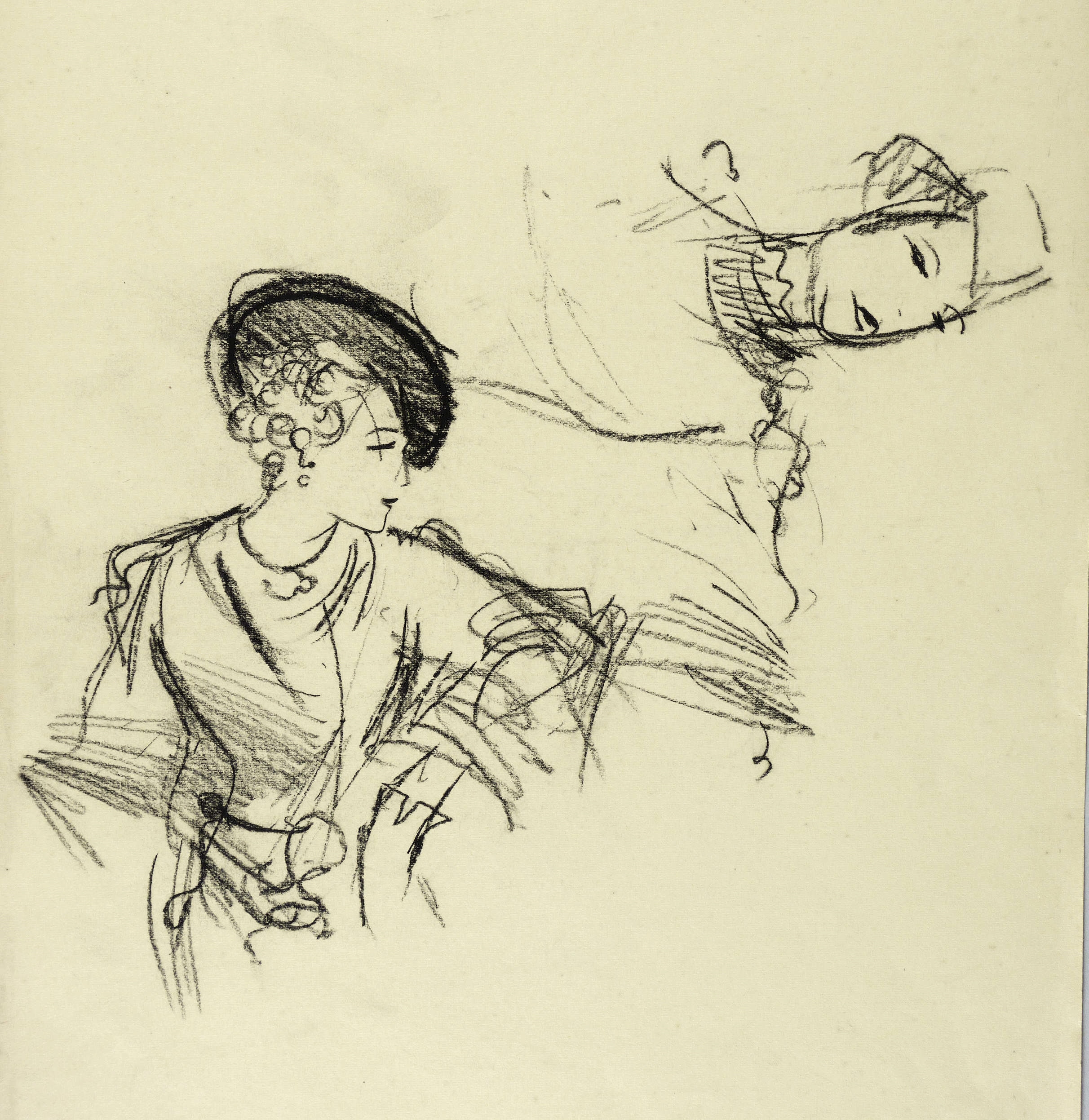 Nicht näher bezeichnet. – Verso weitere Skizzen in schwarzer Kreide mit sieben Frauen- und Mädchenköpfen. - Provenienz: Nachlass Franz Schwimmer, Privatbesitz Leipzig. – Leichte Lagerspuren. Guter Zustand.