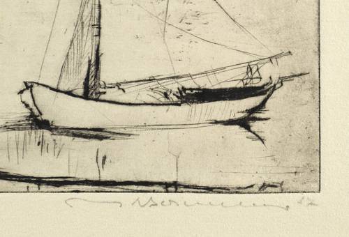 1937. Radierung / Kaltnadel, mit Plattenton, in Schwarz, auf weichem gelbem Velin. – Originale Künstlergrafik, von Max Schwimmer. – Auflage Exemplar Nr. 12/20. – 11,8 x 13,9 cm (Darstellung / Platte), 20 x 28 cm (Blatt).