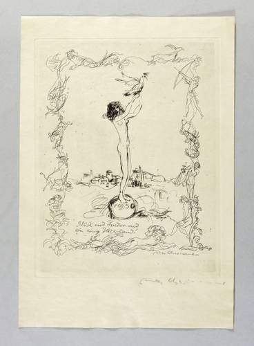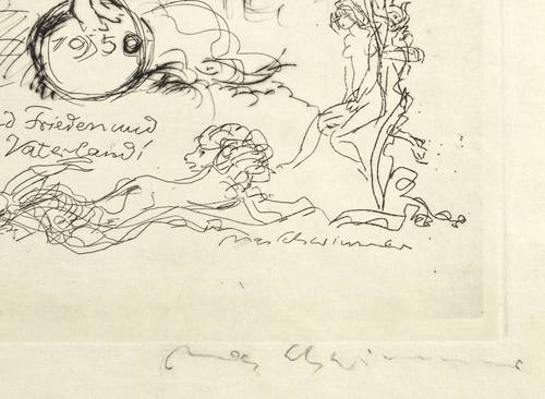 George 128. – Rechts unten in Bleistift signiert: ″Max Schwimmer″. In der Platte rechst unten nochmals signiert. Dazu Inschrift: ″1950 / Glück und Frieden und ein einig Vaterland!″ – Geringe Lagerspuren. Guter Zustand.