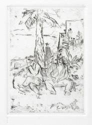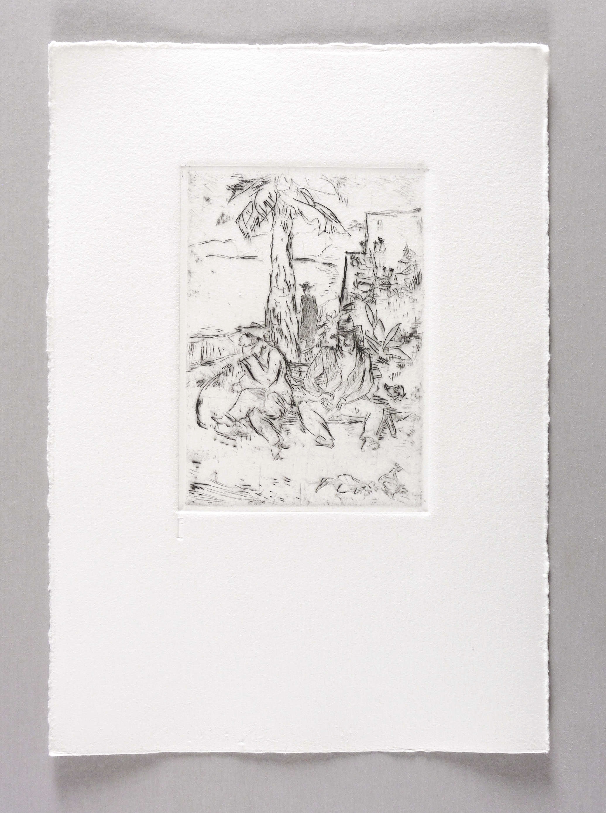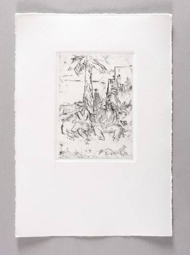 1924/1980. Radierung / Kaltnadel, in Schwarz, auf Hahnemühle-Bütten. – Originale Künstlergrafik, von Max Schwimmer. – Druckerexemplar. – 13,7 x 9,9 cm (Darstellung / Platte), 28 x 20 cm (Blatt).