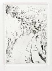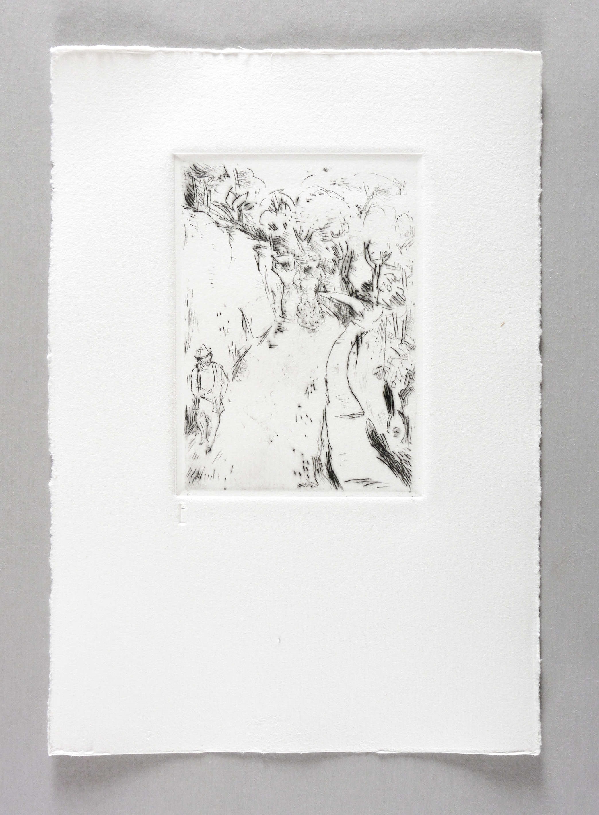 1924/1980. Radierung / Kaltnadel, in Schwarz, auf schwerem hellchamois Hahnemühle-Bütten. – Originale Künstlergrafik, von Max Schwimmer. – Druckerexemplar. – 13,8 x 9,9 cm (Darstellung / Platte), 29 x 20 cm (Blatt).