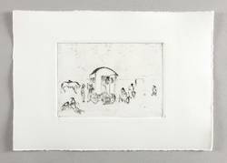 1920-1930/1980. Radierung / Kaltnadel, in Schwarz, auf hellchamois Hahnemühle-Büttenkarton. – Originale Künstlergrafik, von Max Schwimmer. – 10,5 x 14,9 cm (Darstellung / Platte), 28 x 20 cm (Blatt).