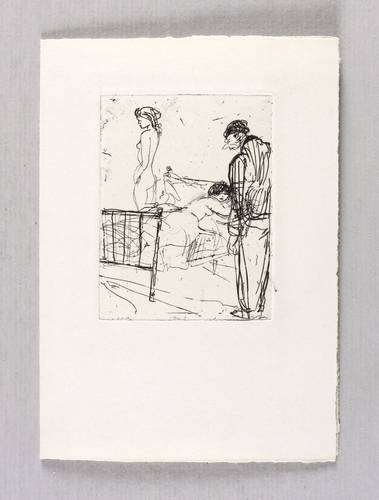 George 162. – Nicht handsigniert. Verso in Bleistift autorisiert von der wissenschaftlichen Betreuerin des Nachlasses Magdalena George: ″Für Max Schwimmer M. George″. – Als Klappkarte gestaltet. - Posthumer Abzug von der originalen Platte. Gedruckt wohl im Zusammenhang mit der Mappenedition ″Max Schwimmer. Radierungen (Leipzig: Staatlicher Kunsthandel der DDR / Galerie am Sachsenplatz 1980). - Provenienz: Sammlung der Kunstwissenschaftlerin Magdalena George. – Sehr guter Zustand.
