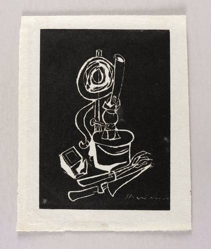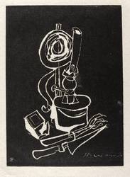 1959. Holzschnitt / Weißlinienschnitt, in Schwarz, auf hellgelbem Japan. – Originale Künstlergrafik, von Hanns Zethmeyer. – 14,6 x 10,5 cm (Darstellung / Druckstock), 17,4 x 13,8 cm (Blatt).