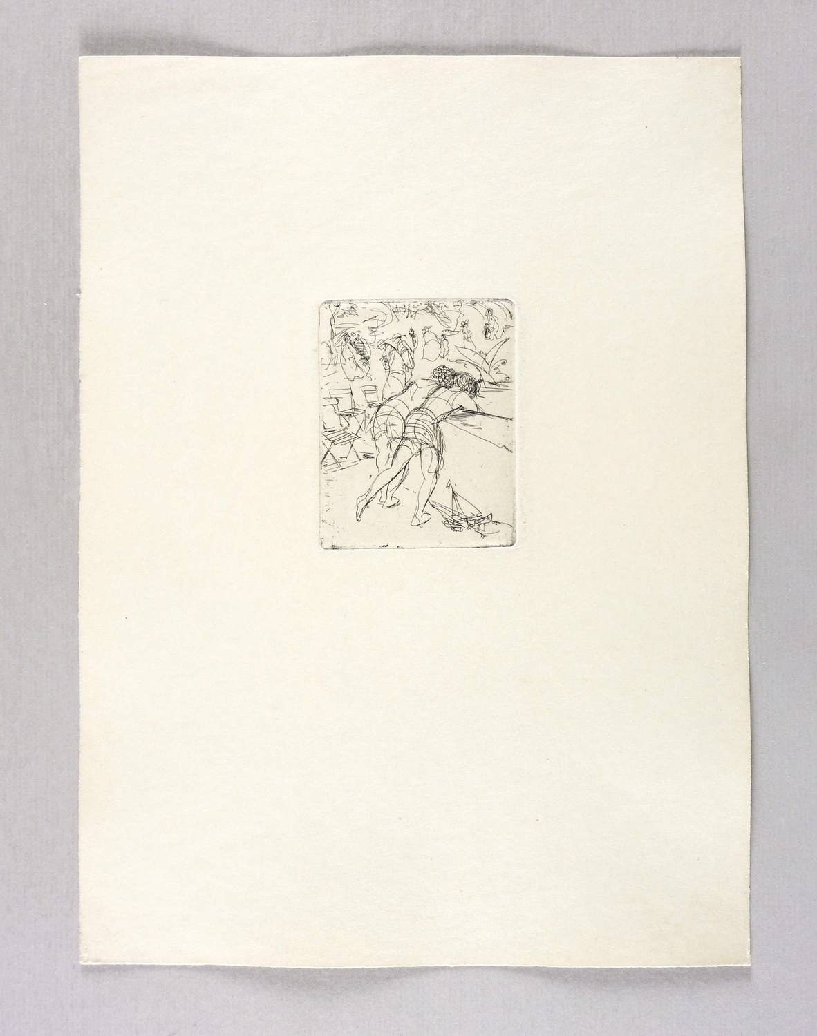 1953-1958. Radierung / Strichätzung, in Schwarz, auf festem chamois Maschinenpapier. – Originale Künstlergrafik, von Max Schwimmer. – Verlegerexemplar. – 8,0 x 6,2 cm (Darstellung / Platte), 29 x 22 cm (Blatt).