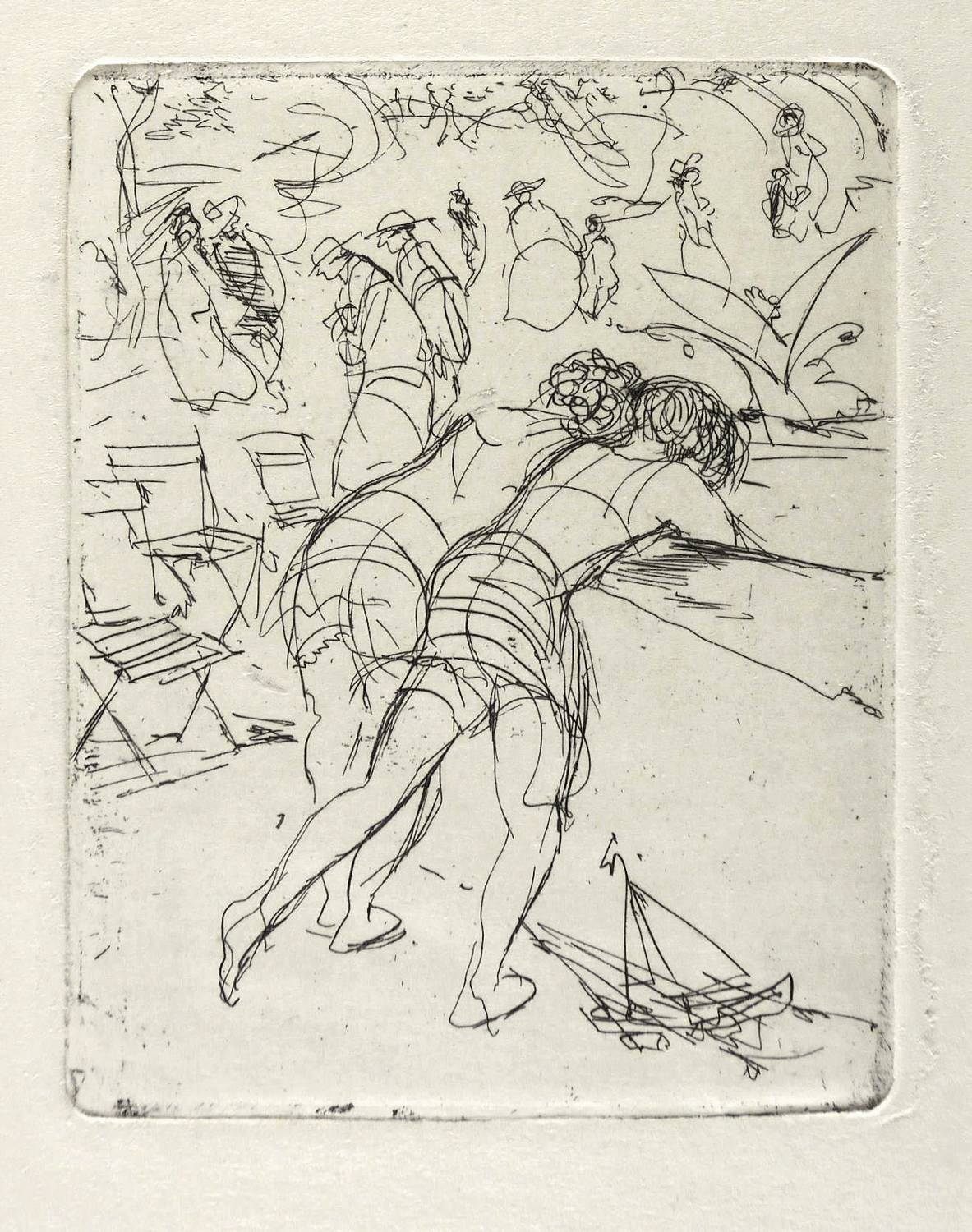 George 164. – Nicht handsigniert. – Später Abzug von der originalen Platte wohl 1960-1970, augenscheinlich vor der Edition der 3 Mappen Schwimmer-Radierungen im Staatlichen Kunsthandel der DDR bzw. in der Galerie am Sachsenplatz (1980/85). - Provenienz: Sammlung Dr. Magdalena George, Kunstwissenschaftlerin in Leipzig, Autorin einer maßgeblichen Monografie und des Druckgrafik-Werkverzeichnisses zu Max Schwimmer. – Sehr gut erhalten.