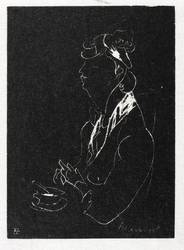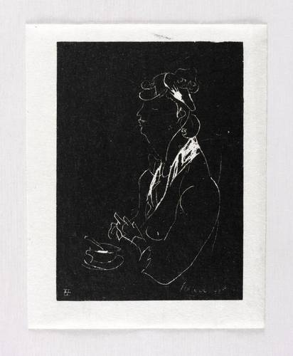 George 336. – Aus: Max Schwimmer, Zyklus in Schwarz-Weiss. In Holz gestochen und auf Japanpapier handgedruckt von H. Zethmeyer (Leipzig: Eigenverlag [1959]). – Nicht handsigniert. Im Holzstock rechts unten gestochene Signatur: ″Schwimmer″. Ligiertes Monogramm: ″HZ″. – Einzelblatt aus dem ″Zyklus Schwarz-Weiß″, den Hanns Zethmeyer nach Zeichnugnen von Max Schwimmer in Holz schnitt. – Tadellos. Sehr guter Zustand.