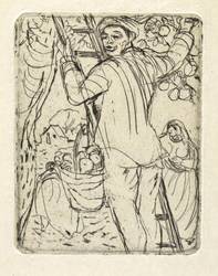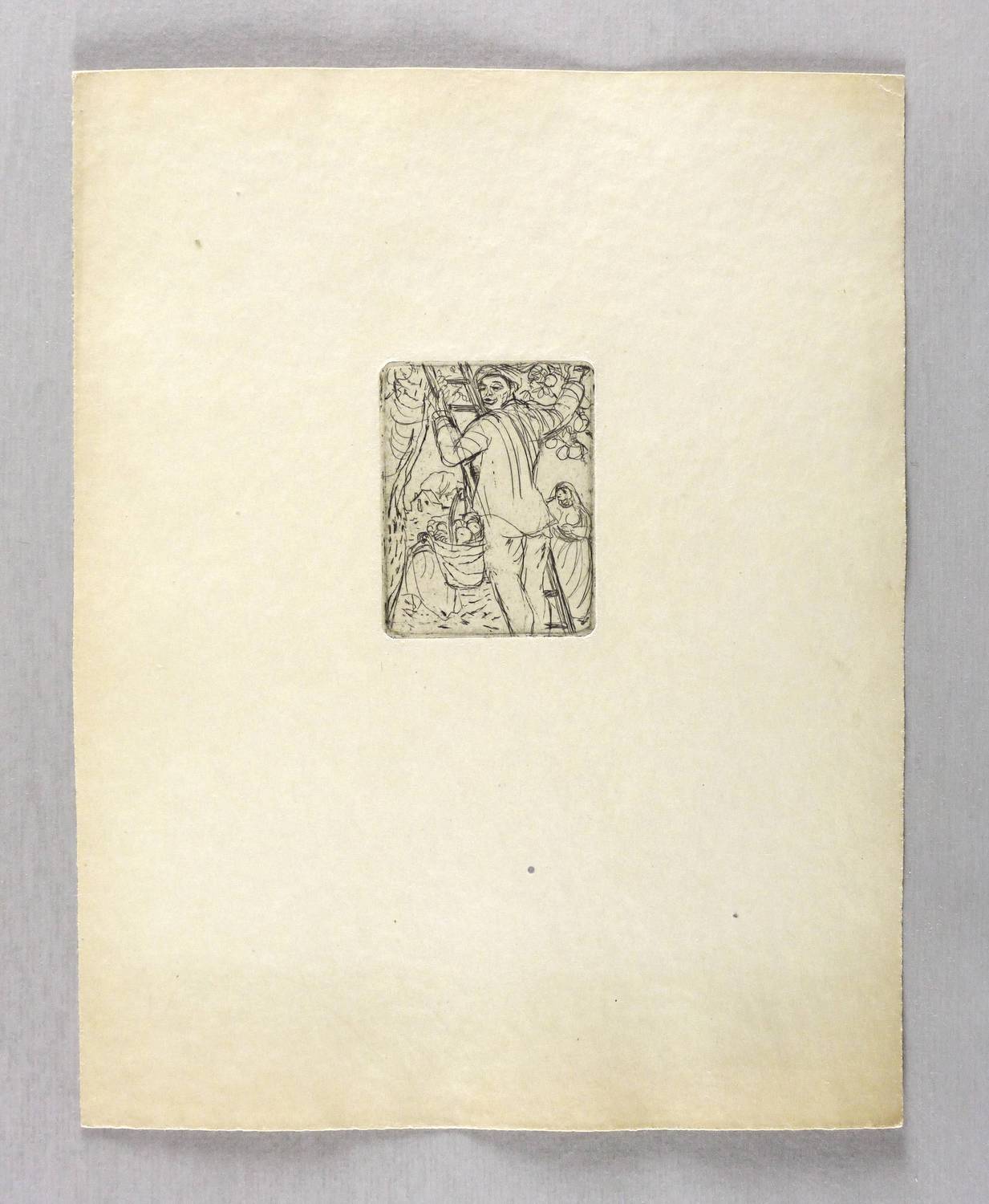 1953-1958. Radierung / Strichätzung, in Schwarz, auf festem chamois Maschinenpapier. – Originale Künstlergrafik, von Max Schwimmer. – 8,2 x 6,2 cm (Darstellung / Platte), 31 x 24 cm (Blatt).