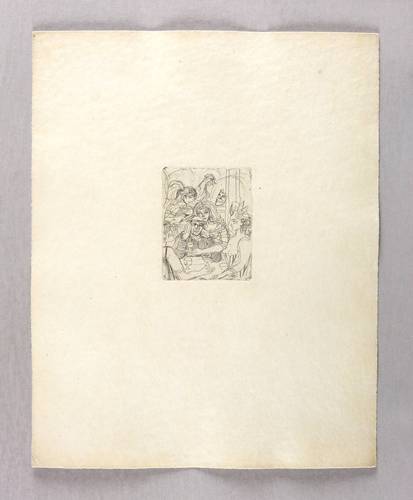 1953-1958. Radierung / Strichätzung, in Schwarz, auf festem chamois Maschinenpapier. – Originale Künstlergrafik, von Max Schwimmer. – 7,9 x 6,2 cm (Darstellung / Platte), 31 x 25 cm (Blatt).
