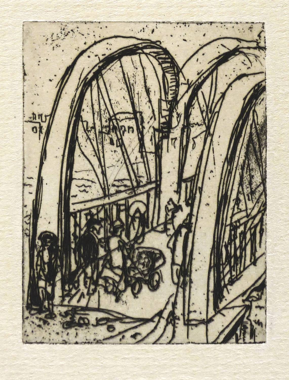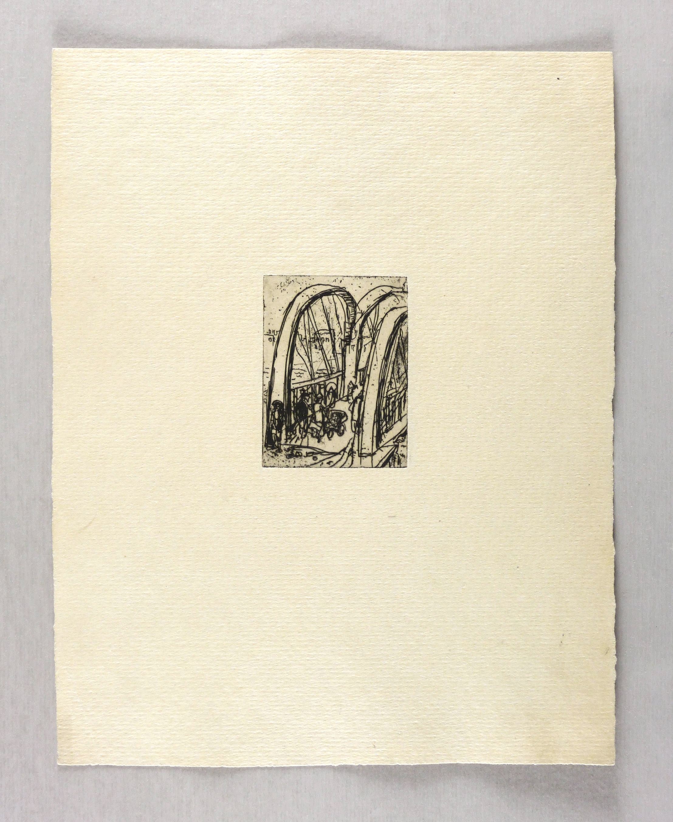 1953-1958. Radierung / Strichätzung, in Schwarz, auf festem chamois Maschinenpapier. – Originale Künstlergrafik, von Max Schwimmer. – 7,9 x 6,0 cm (Darstellung / Platte), 30 x 24 cm (Blatt).