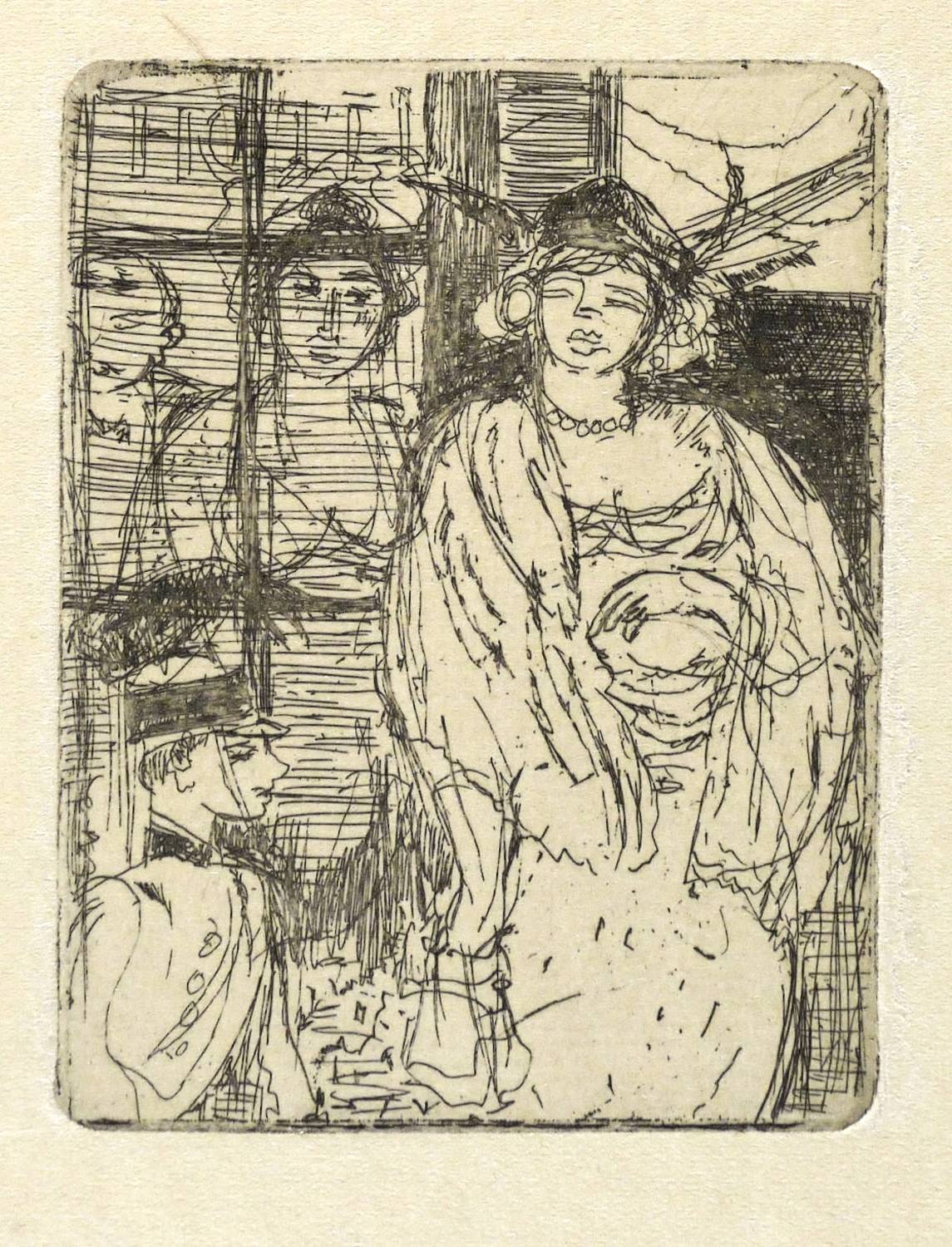George 148. – Nicht handsigniert. – Später Abzug von der originalen Platte wohl 1960-1970, augenscheinlich vor der Edition der 3 Mappen Schwimmer-Radierungen im Staatlichen Kunsthandel der DDR bzw. in der Galerie am Sachsenplatz (1980/85). - Provenienz: Sammlung Dr. Magdalena George, Kunstwissenschaftlerin in Leipzig, Autorin einer maßgeblichen Monografie und des Druckgrafik-Werkverzeichnisses zu Max Schwimmer. – Sehr gut erhalten.