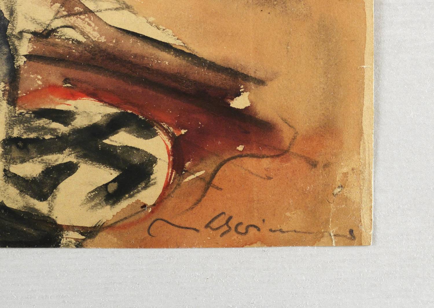 1945/1946. Aquarell, mit schwarzer Tusche, auf leichtem gelbem Velin. – Originale Künstlergrafik, von Max Schwimmer. – Unikat. – 24,5 x 35,5 cm (Darstellung / Blatt).
