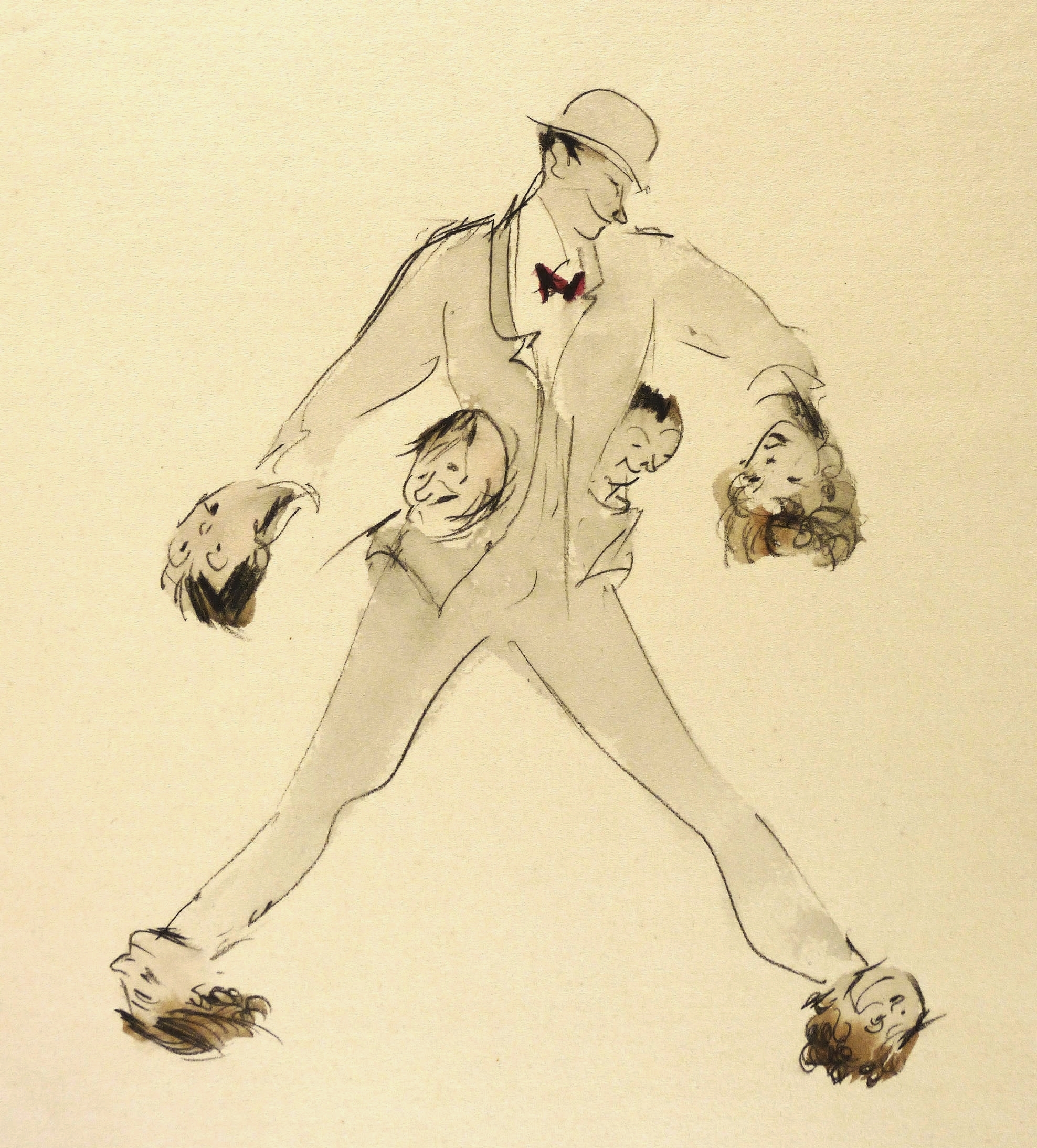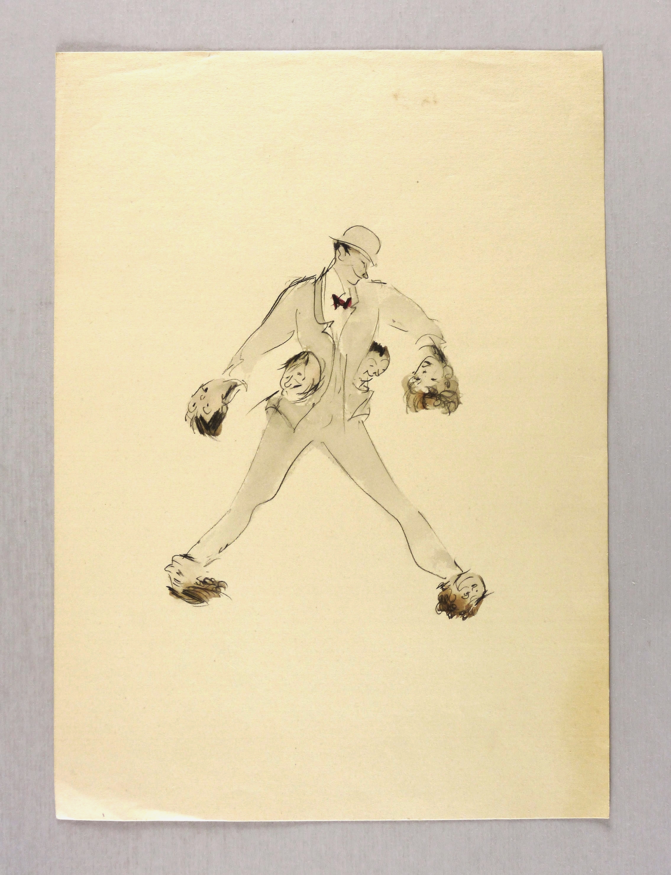 1934-1936. Zeichnung / Kreidezeichnung, aquarelliert, auf gelbem Velin. – Originale Künstlergrafik, von Max Schwimmer. – Unikat. – 31 x 22 cm (Blatt), 15,5 x 12,9 cm (Darstellung).